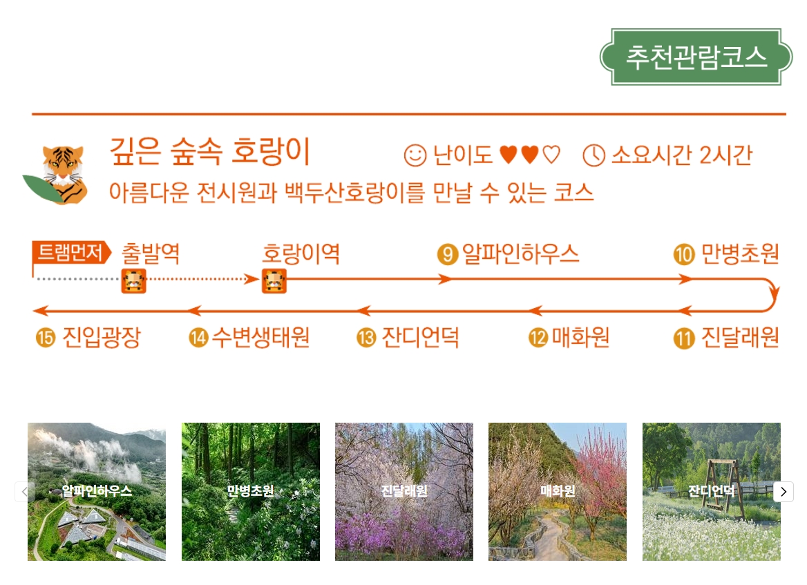 1️⃣ 정문 → 자생식물원 → 고산식물원 → 수생식물원